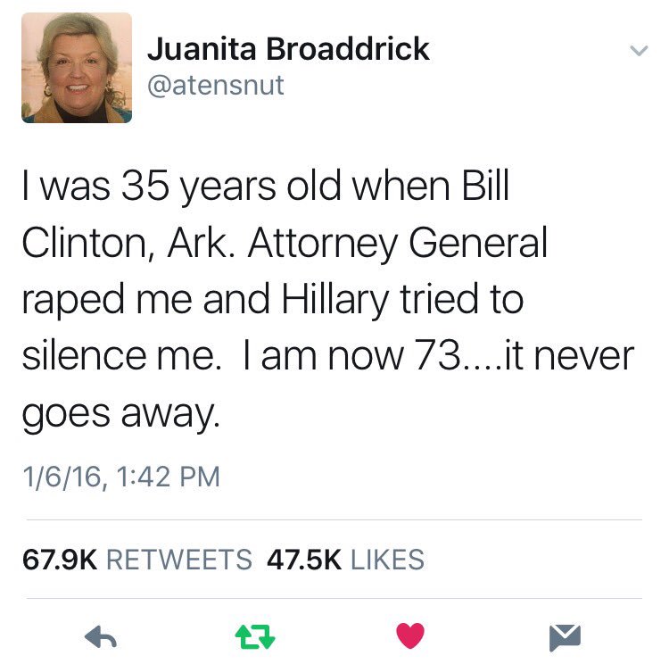 @HillaryClinton @atensnut Anyone who thinks HRC is going to usher in an era of new respect for women is gravely mistaken. #rapeenabler