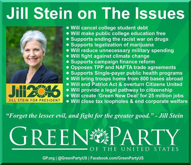 @HillaryClinton @ohiomail Let's all Vote for @DrJillStein President So far the most honest and genuinely cares for people and environment